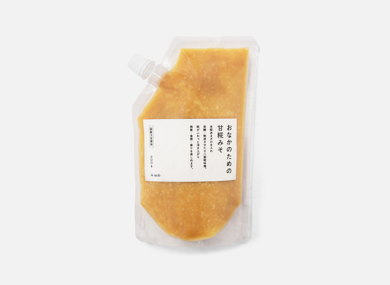 あまざけ×糀のリッチな発酵味噌。毎日の食卓に手軽に腸活を取り入れられます。自立するスタンドパウチ容器で、日々の使いやすさも考えました。
