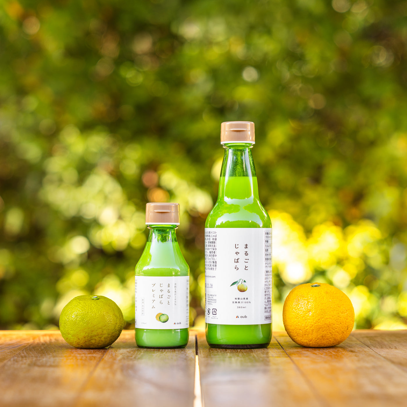 じゃばらが自生していた和歌山県・北山村は日本で唯一の"飛び地"で、和歌山県に位置するにも関わらず、三重県や奈良県に囲まれた珍しい場所にあります。「まるごとじゃばらプレミアム」は、その北山村で採れた希少性の高いじゃばらの、青絞り果汁のみを使用したプレミアムなドリンクです。